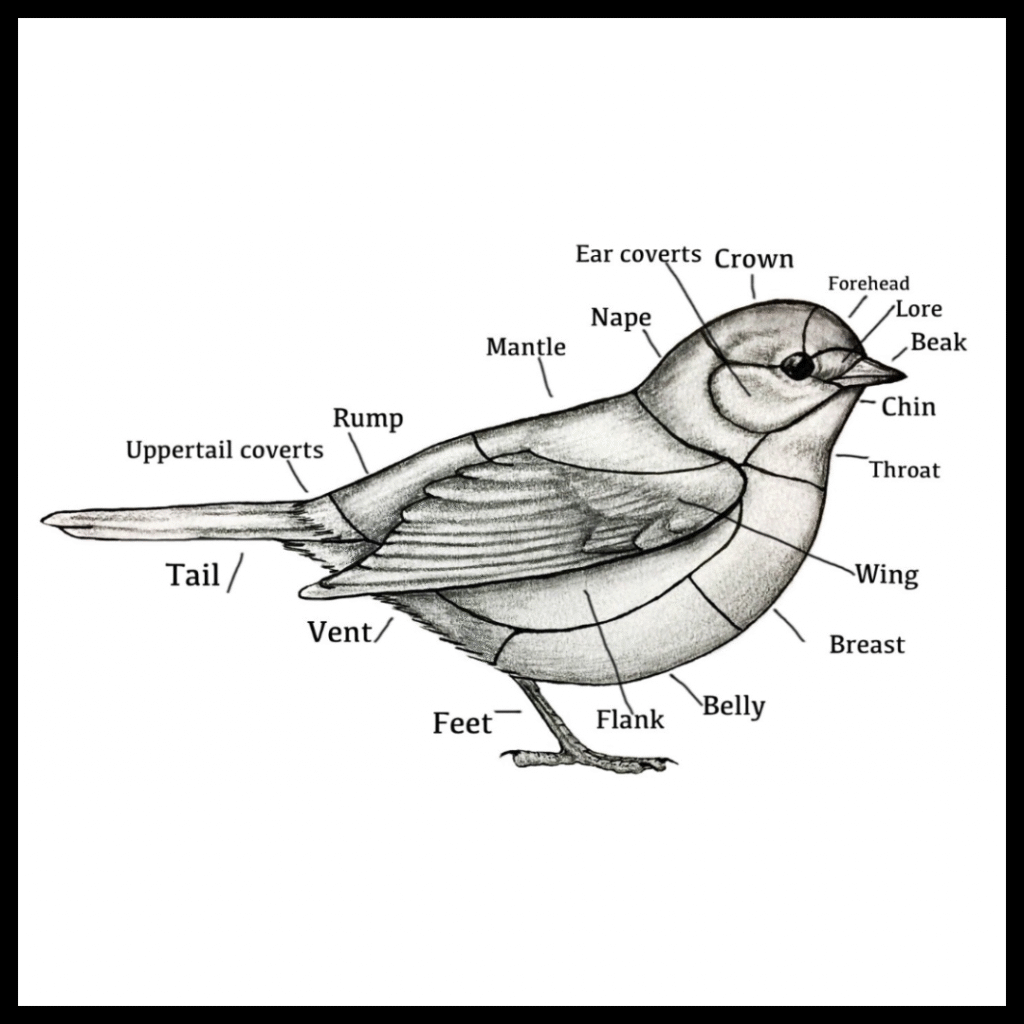 To ID a bird, you need to know the names of each of their parts. From broad regions of a bird to smaller minute field marks, each are clues to a correct bird ID.